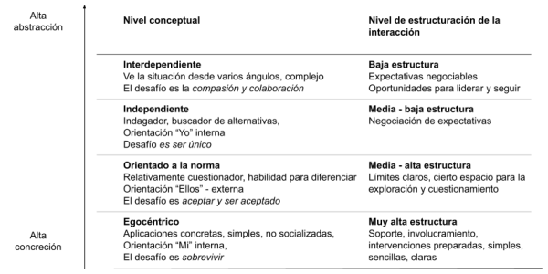 3. Correspondencia entre el nivel de estructuración del encuadre y el nivel de concreción-abstracción de los procesos de estrés focales. No obstante este punto está ampliamente desarrollado en el libro, se pueden comentar brevemente algunos aspectos (ver apartado siguiente)